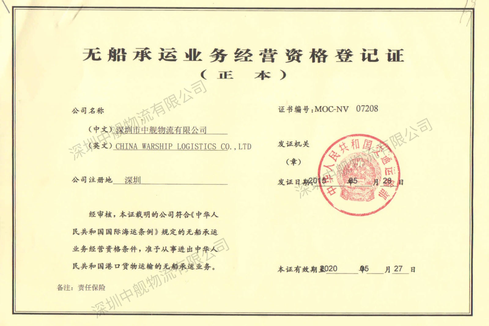 Our company is a non-vessel carrier registered by the Ministry of Communications of the People's Republic of China. Our company can sign a valid freight bill of lading.